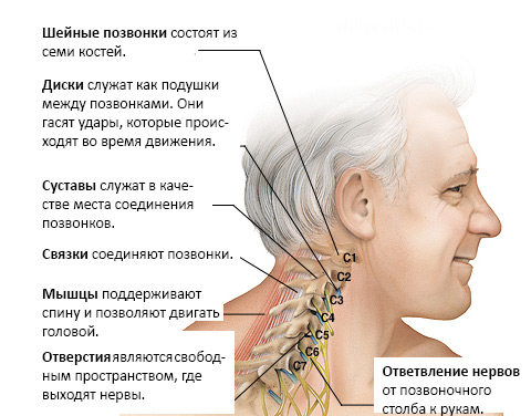 Механизм повышения давления тоже взаимосвязан с шейным отделом позвоночника т.к. сердце качает кровь по всему организму кровь, встречая на своем пути заторы и препятствия в виде передавленных сосудов и артерий, она все равно пробивается через них, для этого сердце как насос увеличивает нагрузку и давление поднимается. В нашем организме все взаимосвязано, если мышца сокращается от спазма, то тянет за собой связку и позвонок, а он перекрывает в свою очередь нормальное кровообращение и как следствие питание головного мозга. Посмотрите, на шейный отдел позвоночника и вам станет ясно, что при сдавливании артерии движение крови в головной мозг будет затруднено..